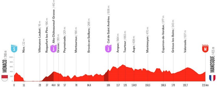 | 2 | zo 23 aug | Monaco – Manosque | heuvelrit, aankomst heuvelop | 215,2 km |