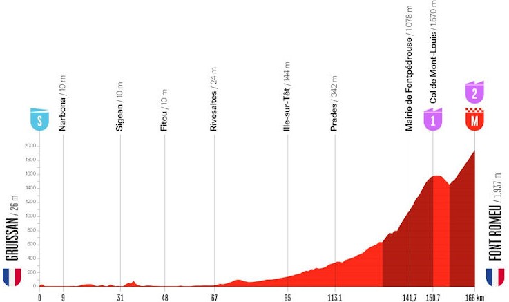 | 3 | ma 24 aug | Gruisan – Fon Romeu | bergrit, aankomst bergop | 166,7 km |